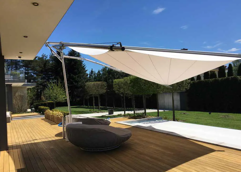 La rotabilità di 270 gradi evoca il Ombrellone a vela di 30 m² e protezione solare di 75 m². Se il vento diventa troppo forte, il sistema del braccio si piega automaticamente e la vela si rannicchia. Che si tratti di un giardino, un patio o una terrazza, la tenda da sole a vela può trasformare l'ambiente esterno in uno spazio accogliente e elegante.