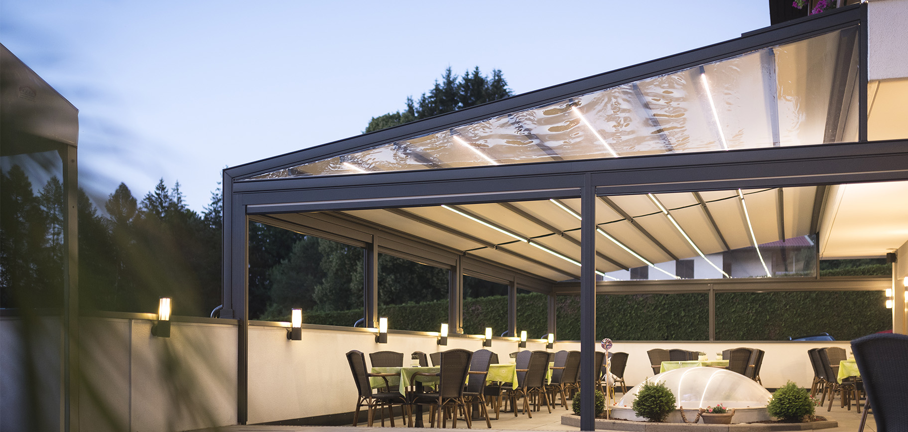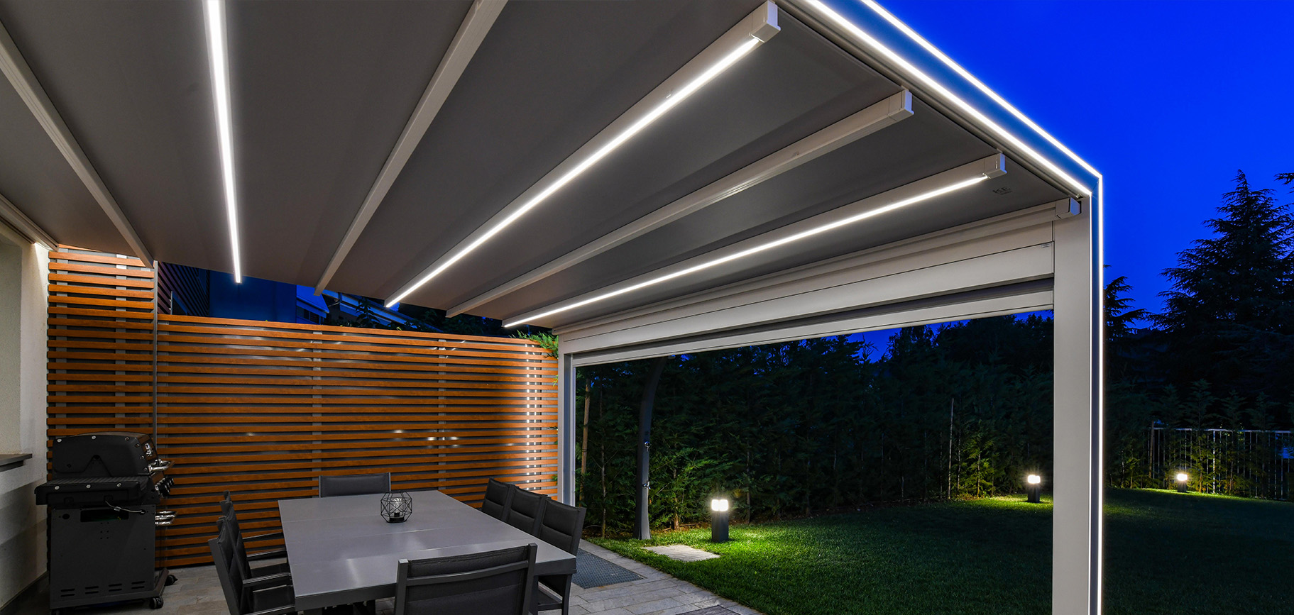 dati tecnici Gennius VegaLa nuova tenda a pergola dal design lineare, che si contraddistingue per degli innovativi inserti luminosi a luce diffusa lungo guide e colonne.