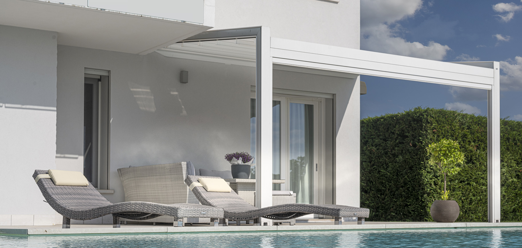 La nuova tenda a pergola dal design lineare, che si contraddistingue per d...
