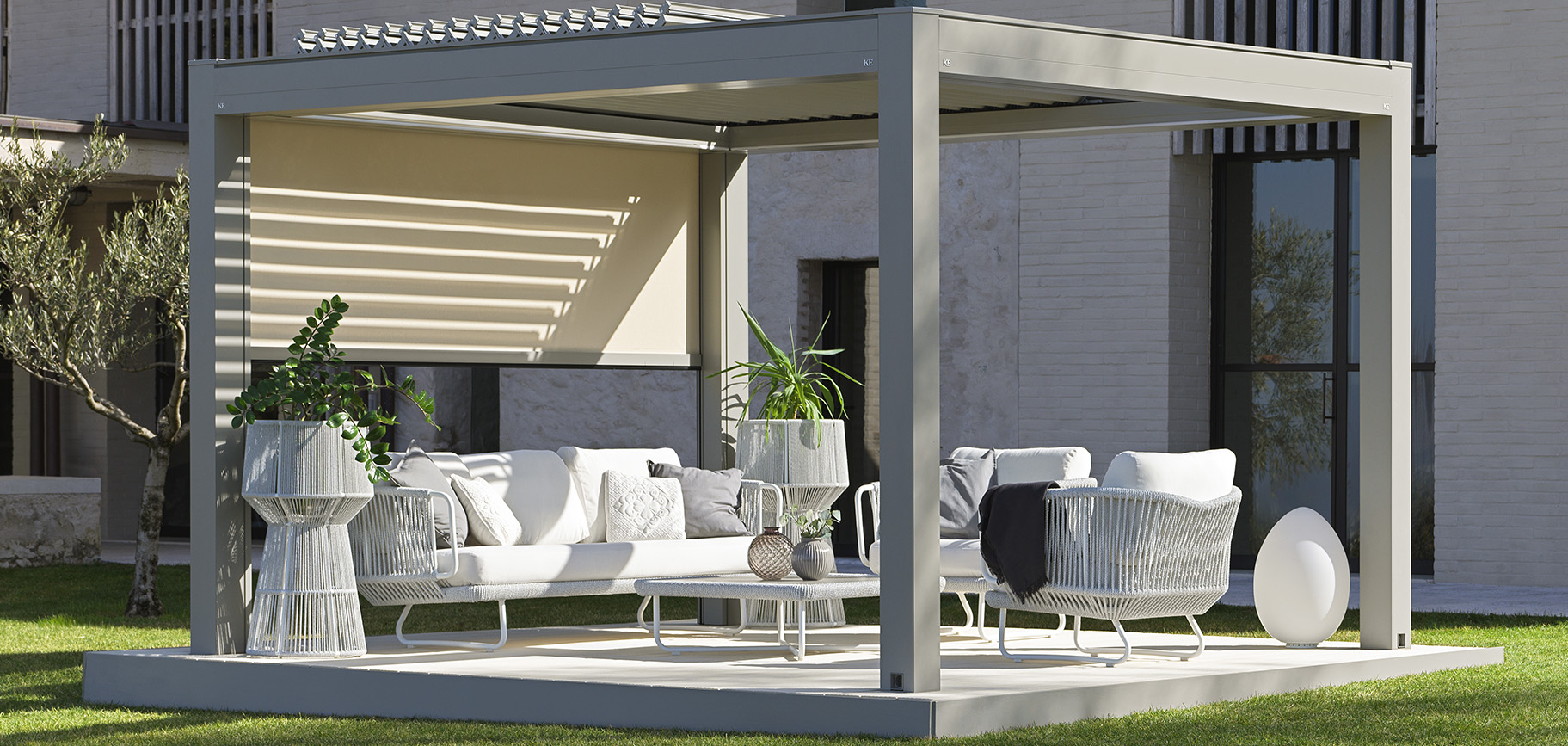 Adatta per essere installata sia in contesti residenziali che commerciali, è stata progettata per avere alte prestazioni di schermatura solare, tenuta al vento e riparo in caso di pioggia grazie ad un sistema di deflusso dell’acqua integrato.