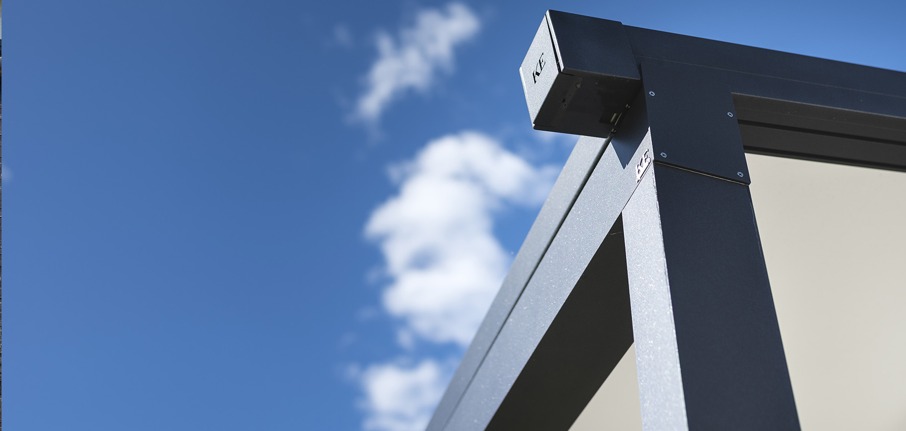 Il tessuto arrotolato garantisce la massima illuminazione possibile rispetto all’ingombro del pacchetto nella pergola.